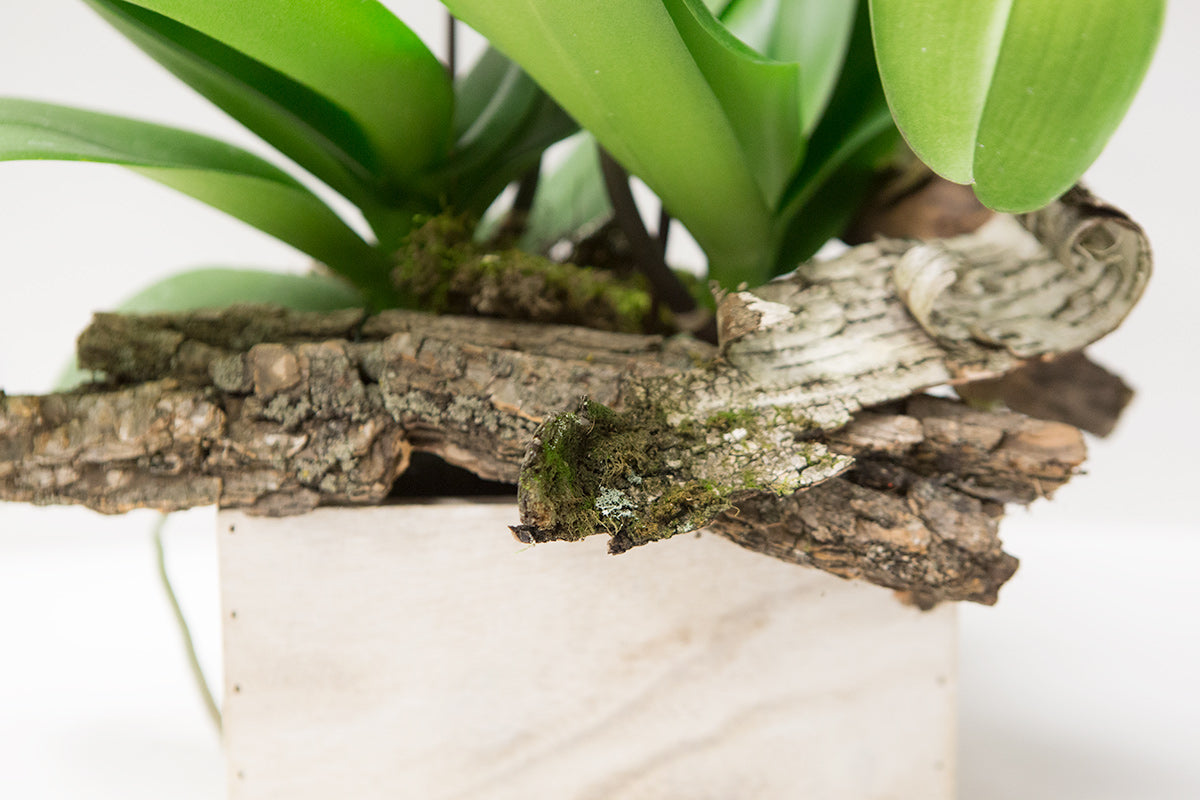 [ Classic Orchid pictured here with wood vessel + foraged bark ]